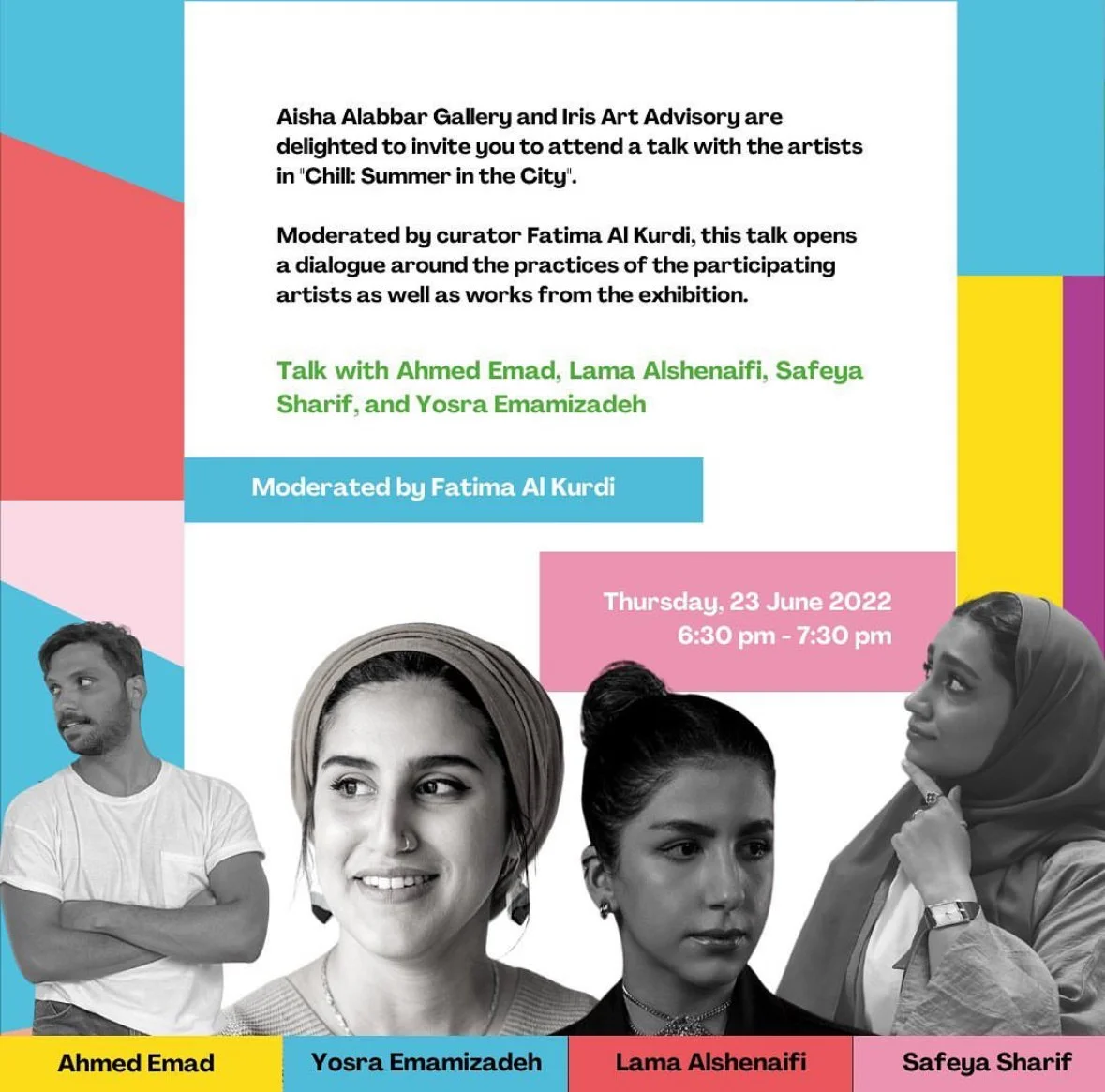 As part of Summer in the City at Aisha Alabbar Gallery, Fatima Al Kurdi co-curated the exhibition and moderated the public talk with participating artists. The conversation explored their practices and highlighted the themes shaping contemporary art in Dubai and Saudi Arabia.