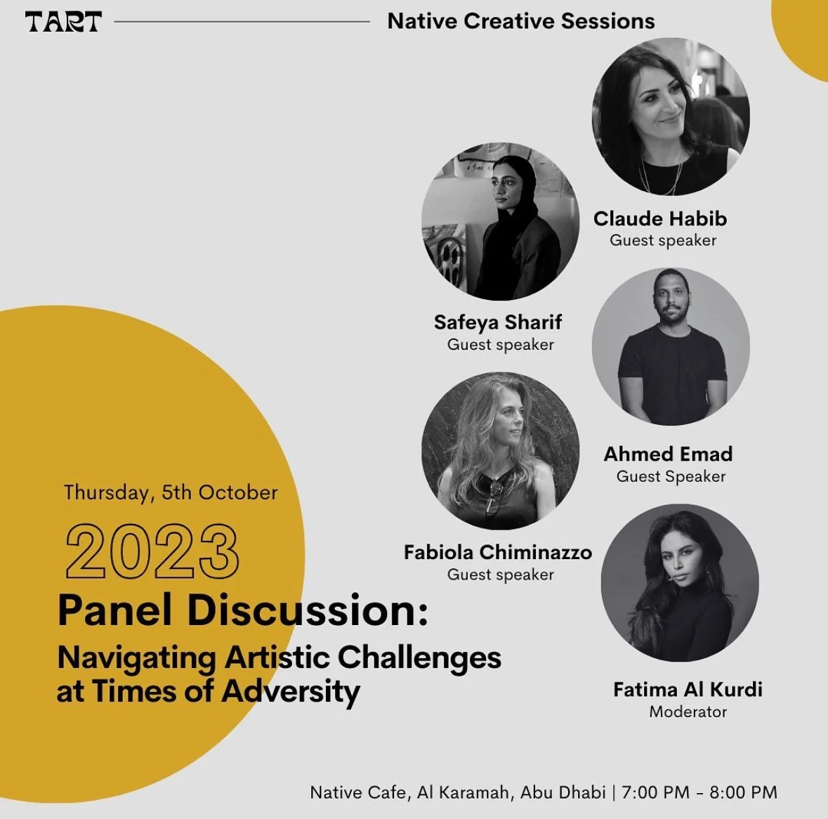As part of the Native Creative Session, Fatima Al Kurdi moderated a panel discussion with four regional and international artists. Titled Navigating Artistic Challenges in Times of Adversity, explored how artists respond to instability, sustain their practices, and continue to create in moments of crisis.