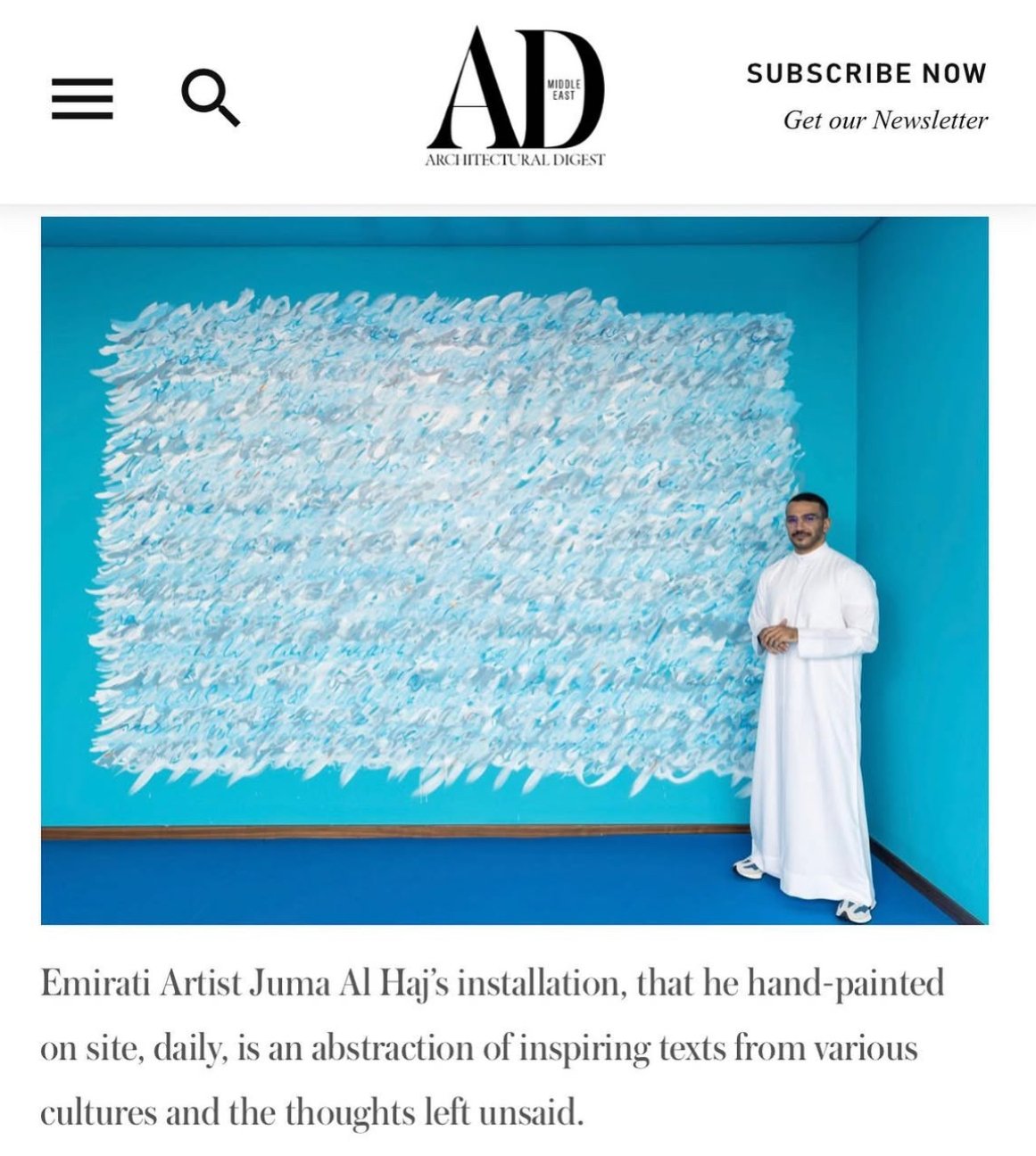As part of Art of Living by AD Middle East, Fatima Al Kurdi curated I Hear Their Echoes, a site-specific installation by Emirati artist Juma Al Haj, in collaboration with Iris Art Advisory. The immersive work reflected on memory, language, and oral history through layered script and spatial design.