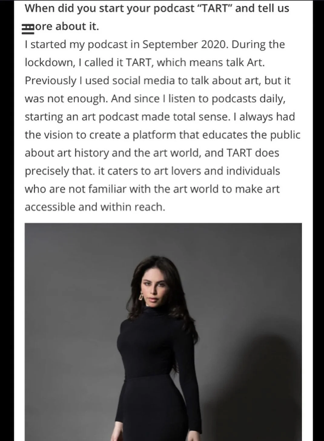 In a special feature with CP Magazine, Fatima Al Kurdi discussed TART, her art history podcast dedicated to unpacking global art narratives with depth and curiosity. The platform bridges past and present, offering accessible, nuanced conversations that reframe how we engage with art and its histories.