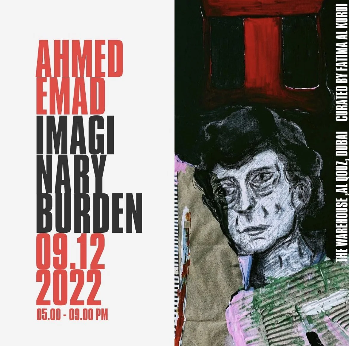 Imaginary Burden, curated by Fatima Al Kurdi in 2022, was a solo exhibition of Ahmed Emad’s work that explored existential themes through raw, intuitive expression. Subtly echoing the influence of Diego Rivera, the exhibition reflected on the weight of personal and collective identity, that is raw ,symbolic, and emotionally charged.