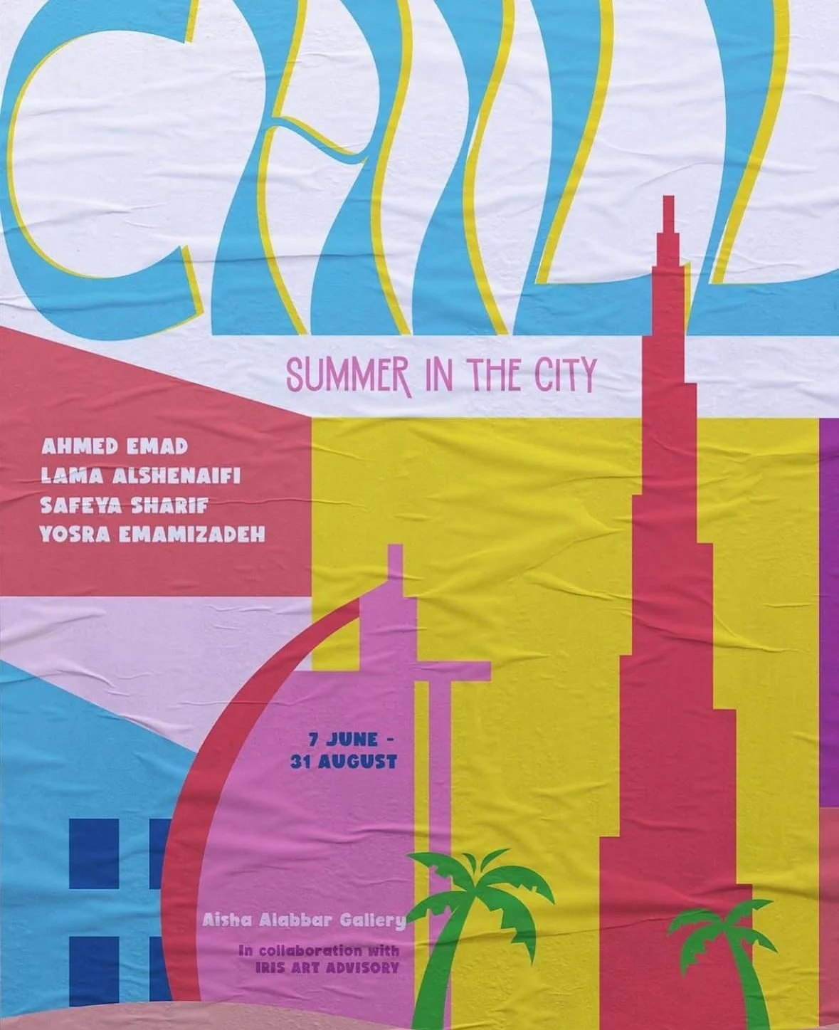 Chill Summer in the City a group exhibition co-curated by Fatima Al Kurdi and Aisha Al Abbar Gallery in collaboration with IRIS Art Advisory. Featuring works by Ahmed Emad, Lama Alshenaifi, Safeya Sharif, and Yosra Emamizadeh, the show reflected on retreat, imagination, and urban summer stillness in the city of Dubai