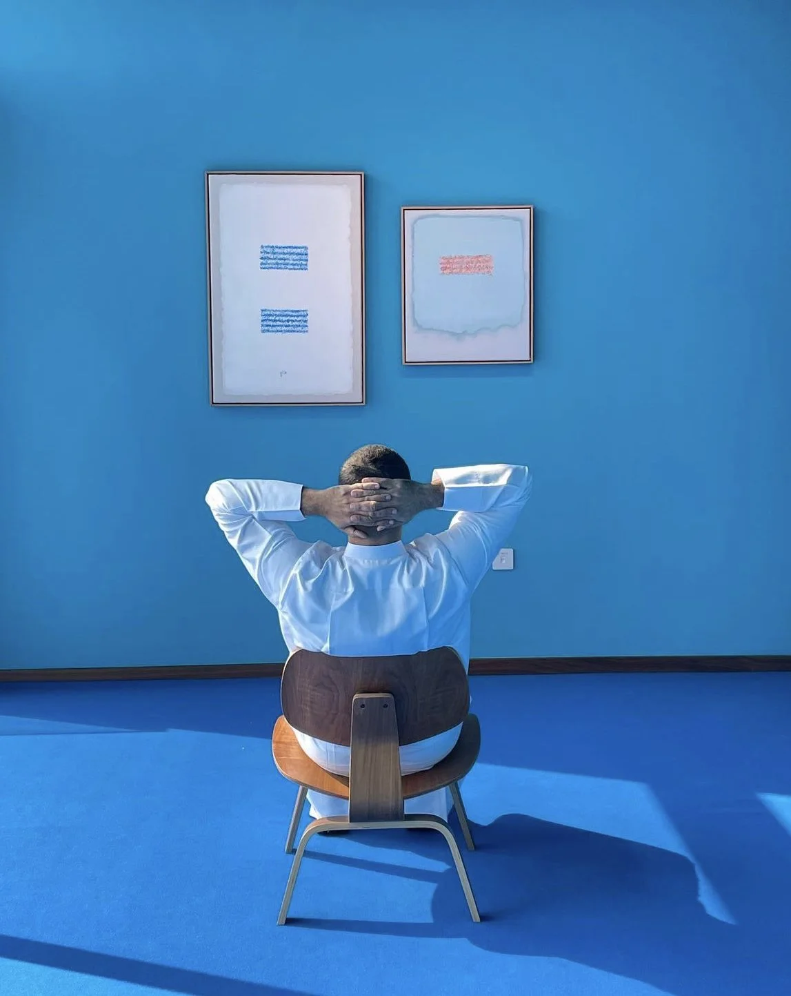 I Hear Their Echoes, a site-specific installation by Juma Al Haj, was curated by Fatima Al Kurdi for IRIS Art Advisory as part of AD Middle East’s Art of Living exhibition. Set within a blue room, the work evokes ancestral sea journeys, exploring oral history, language, and collective memory through immersive form.
